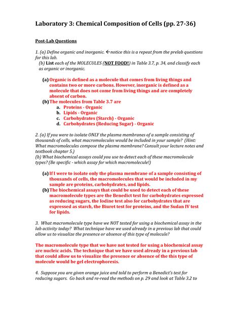 Read Chemical Composition Of Cells Lab Report Answers Reader